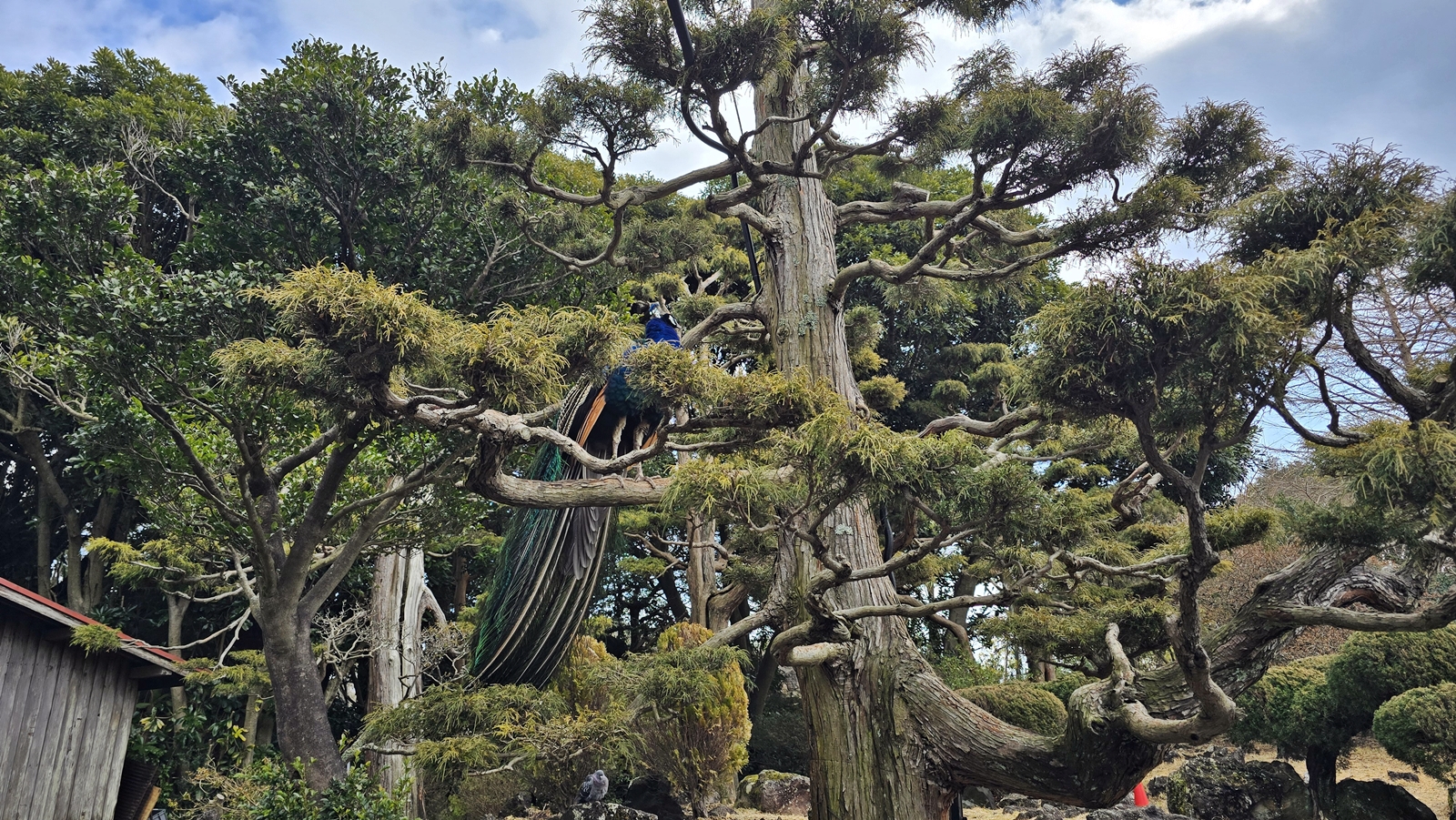 捕捉到躲在樹上的孔雀