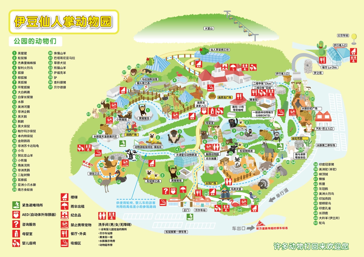 仙人掌動物園位在大室山旁,二個景點適合規劃一日遊。大室山是電影你的名字主要出現的場景,可惜今天纜車維護沒有開放,所以只能安排到動物園看水豚君