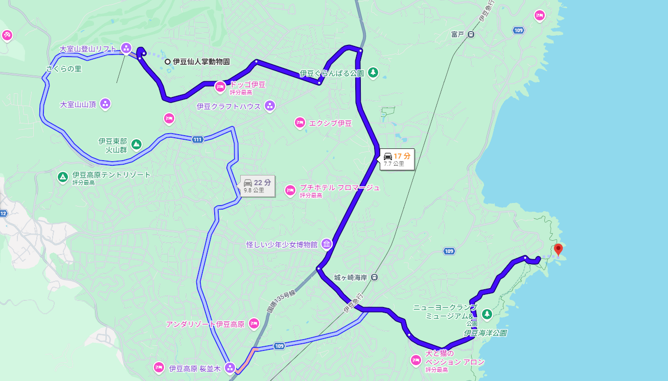 今天要前往的仙人掌動物園和城崎海岸就在東伊豆地區