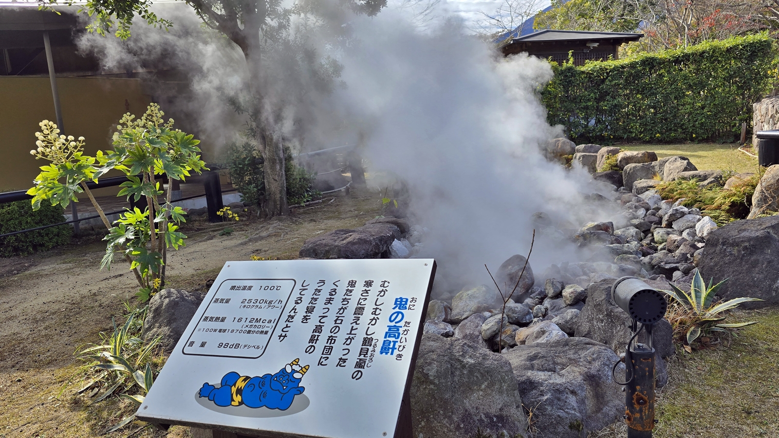 這個「鬼之高鼾」的噴泉,是從地下噴出的蒸氣發出的聲音 。讓人聯想到惡魔的打呼聲