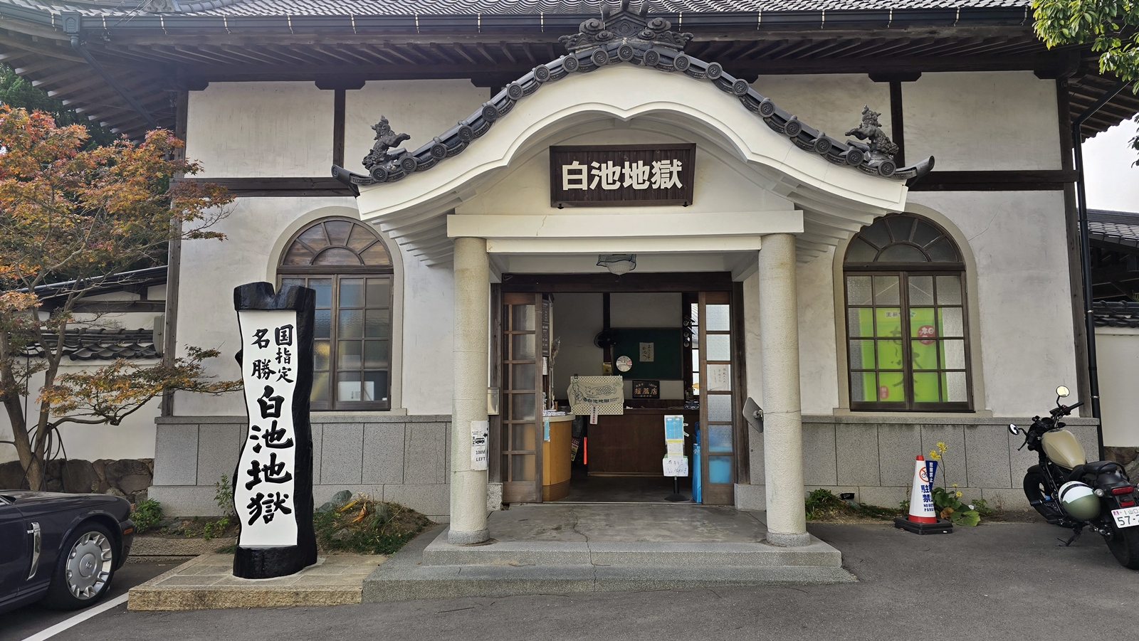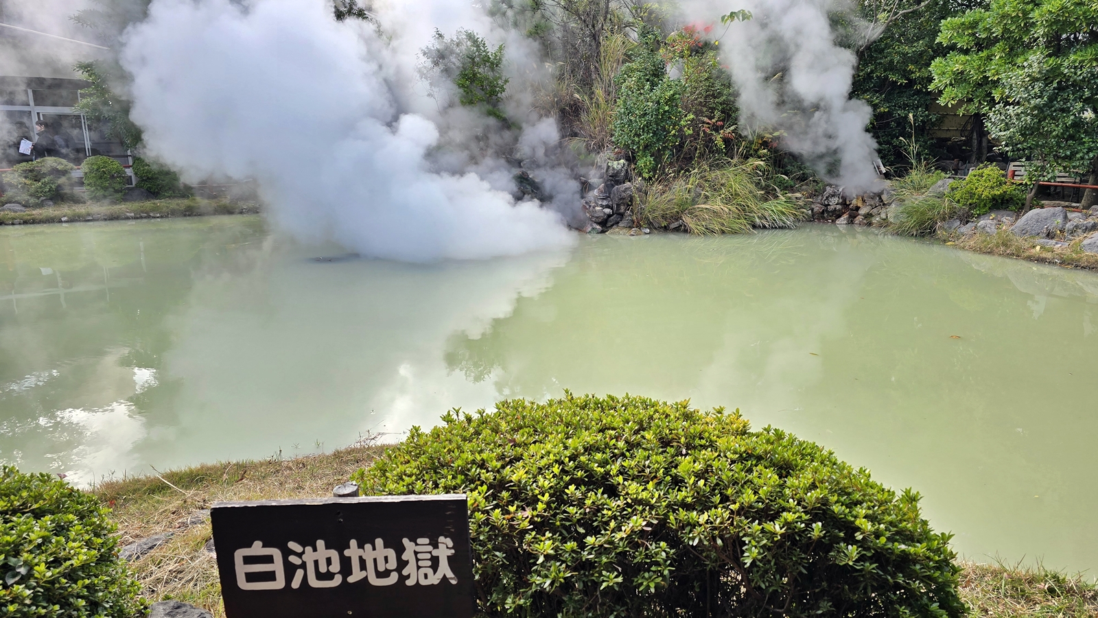 白池地獄 也是距離前面幾個景點不遠 走路就可以到達,外觀與其他地獄很不一樣,就像是個高級別墅,是國家指定的名勝之一