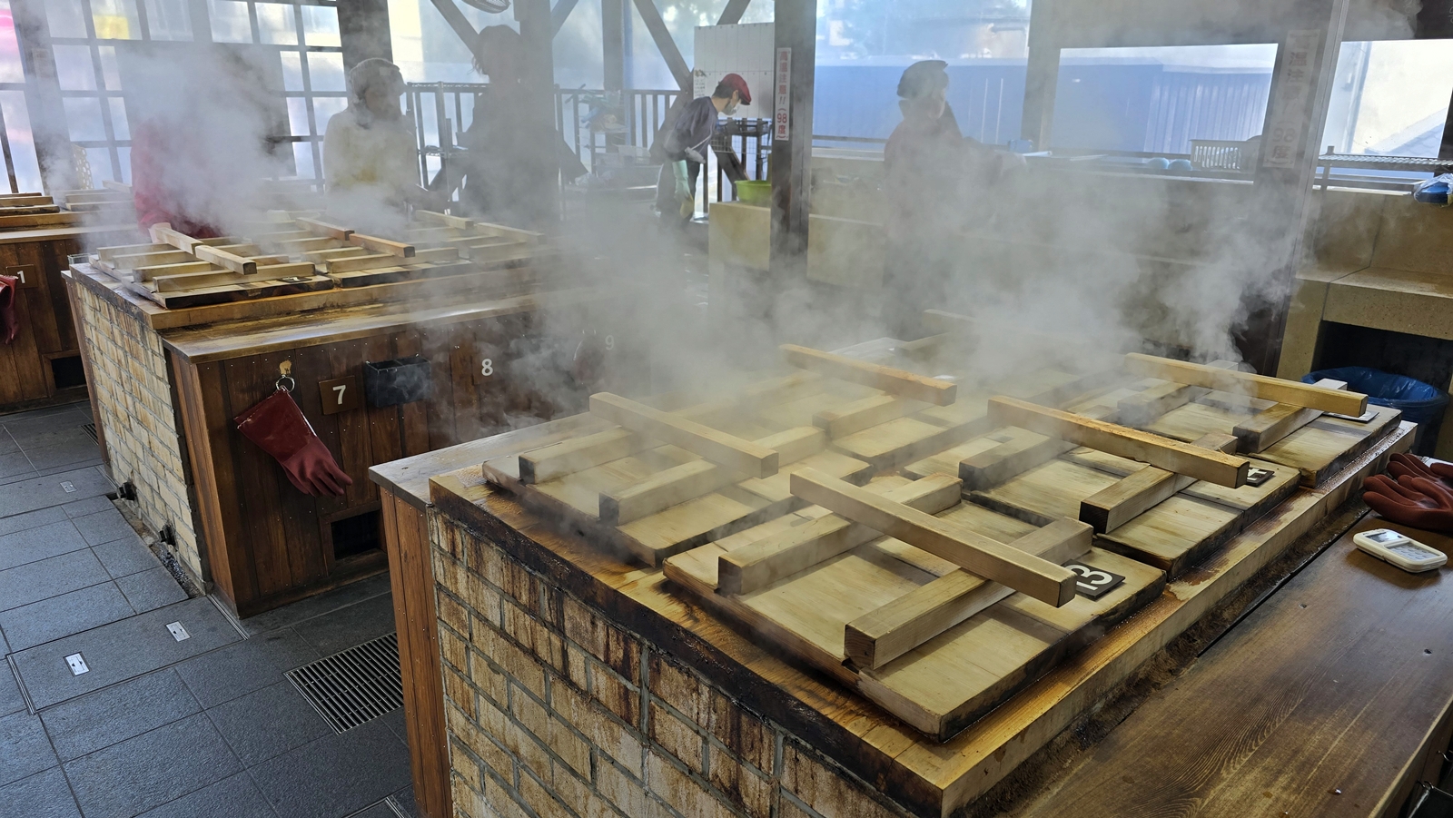 別府人善用地熱到了極致,發展出Jigoku-mushi,也就是利用高溫溫泉蒸氣,將新鮮的海鮮、蔬菜、雞蛋直接蒸熟。在地獄蒸工房鐵輪,你可以親手把食材放入蒸籠,體驗古人的生活智慧