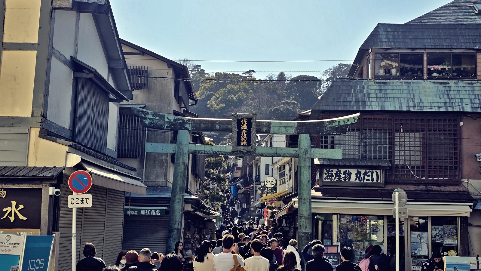 感覺像是來到了江之島菜市場,整條商店街被擠得水洩不通