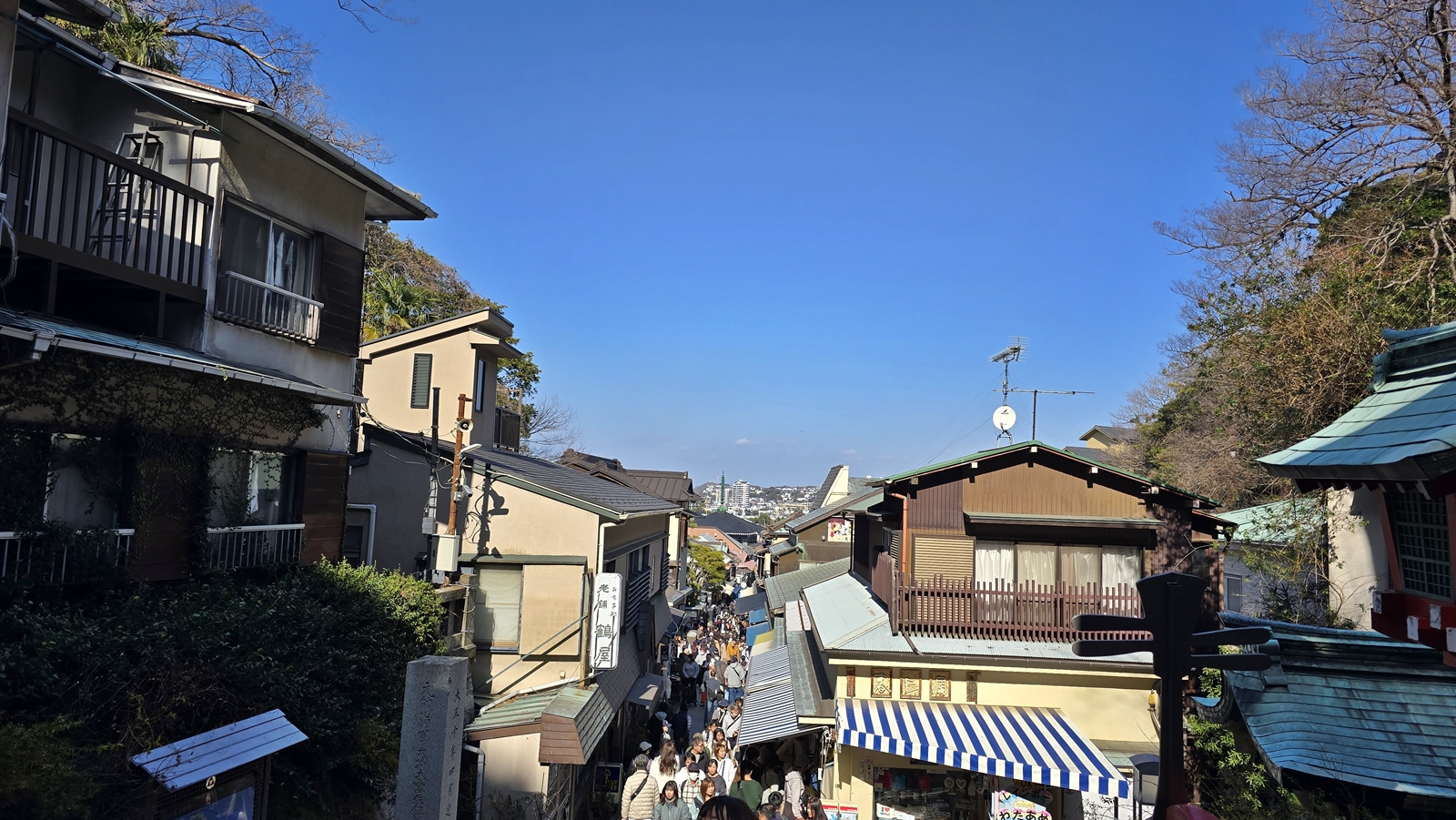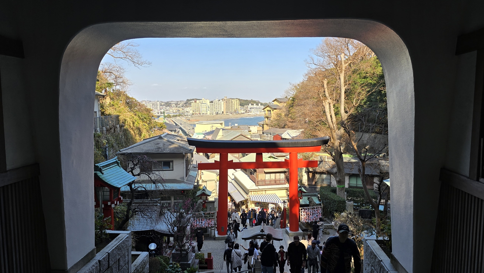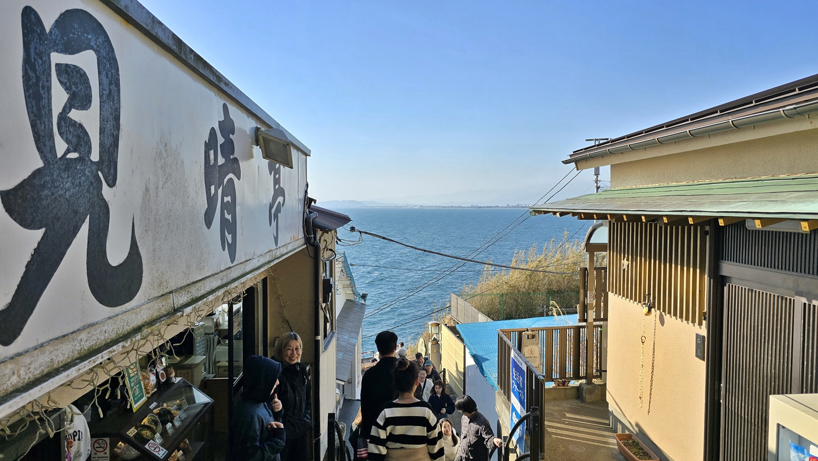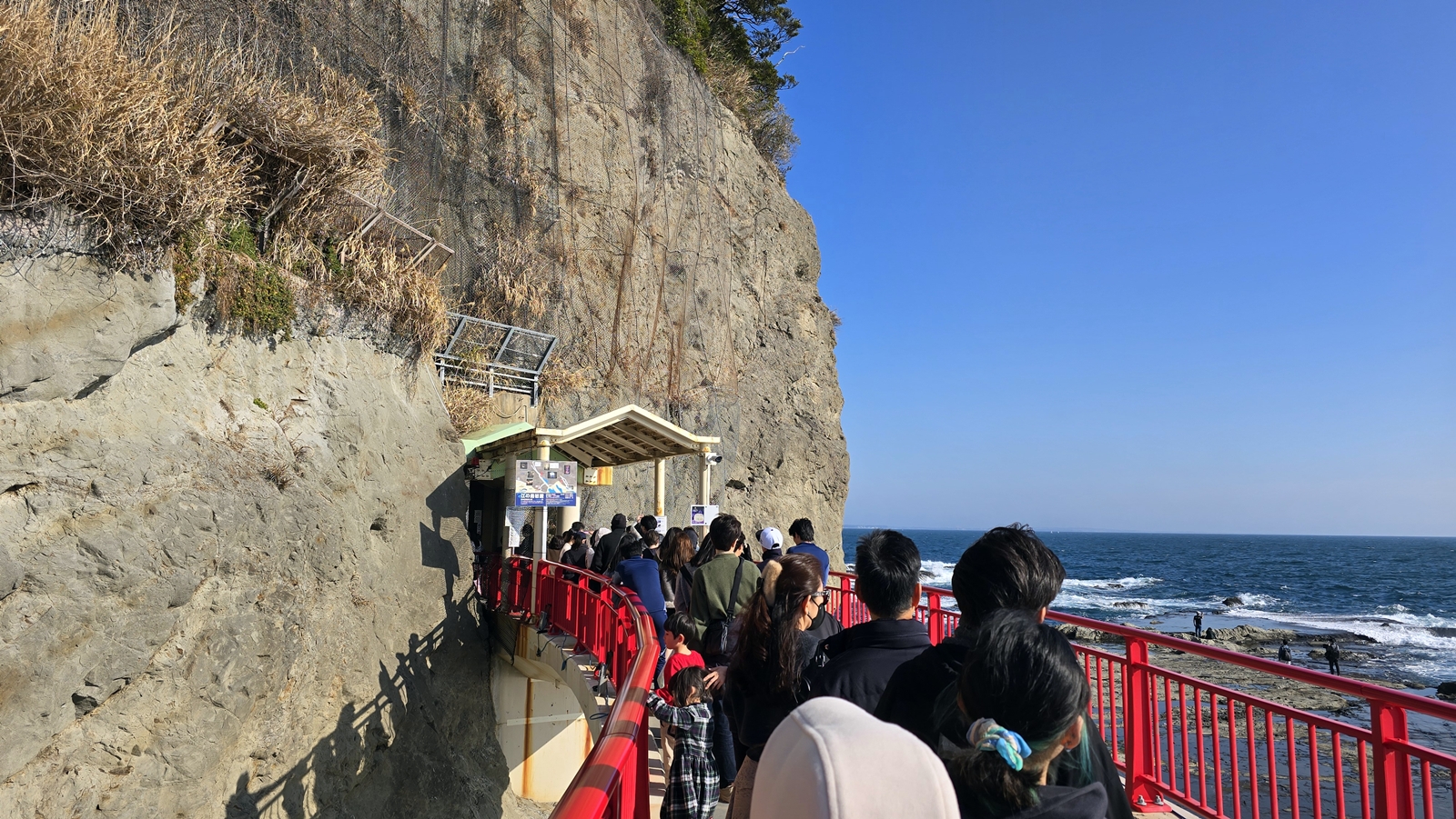 來到江之島站 (一個方式是搭JR到鎌倉轉江之島電鐵,另一個方式是搭小田急江之島線到片瀨江之島站) ,需要走過長長的跨海大橋 才能到達