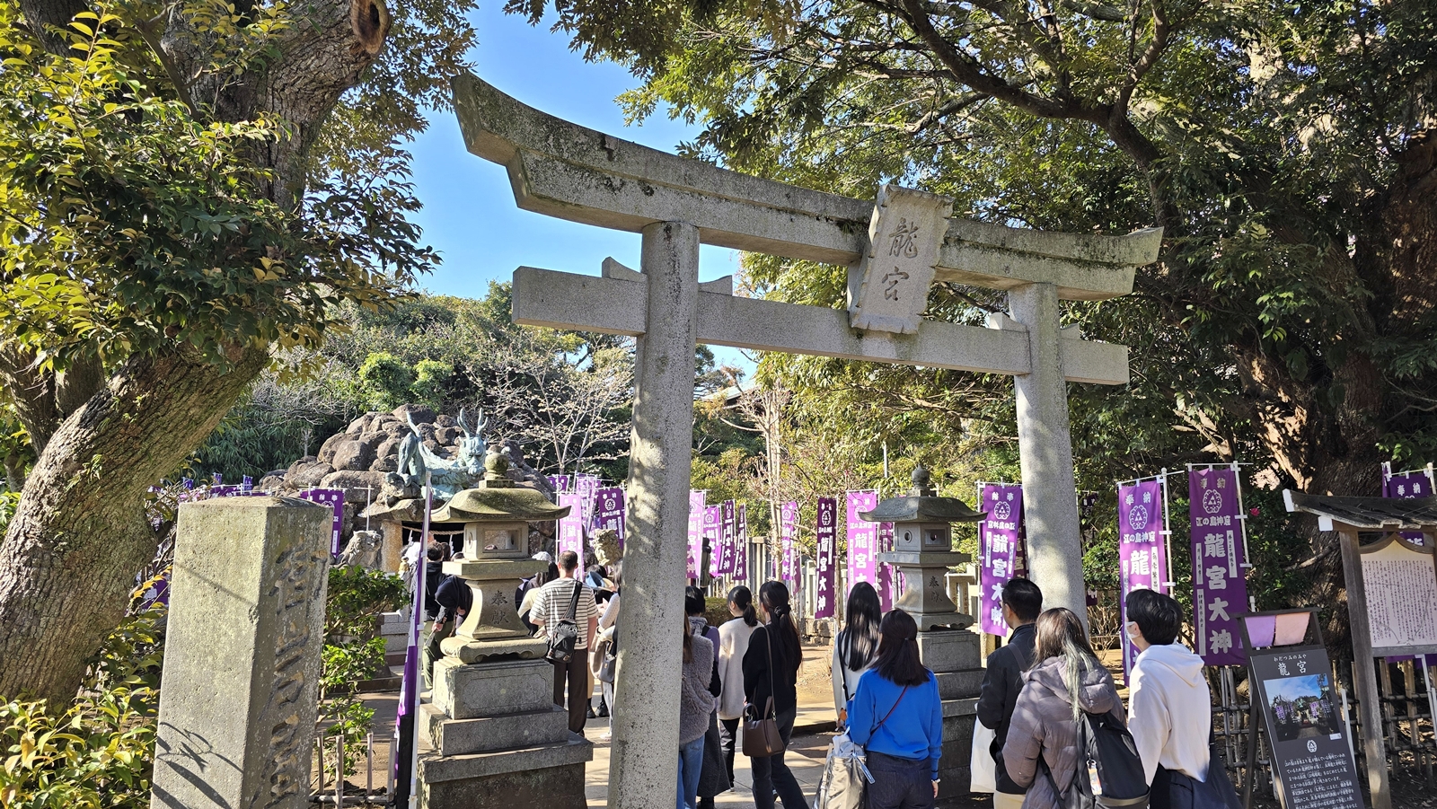 江戶時代是辯天的信仰聖地,因吸引了眾多朝聖民眾,漸漸成為熱鬧的觀光景點;洞穴內部光線昏暗,拿著燭火在狹窄的石壁間穿梭非常有氣氛