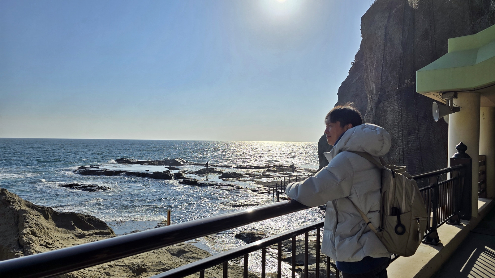 沿著岸邊的步道往下走 更接近海平面了