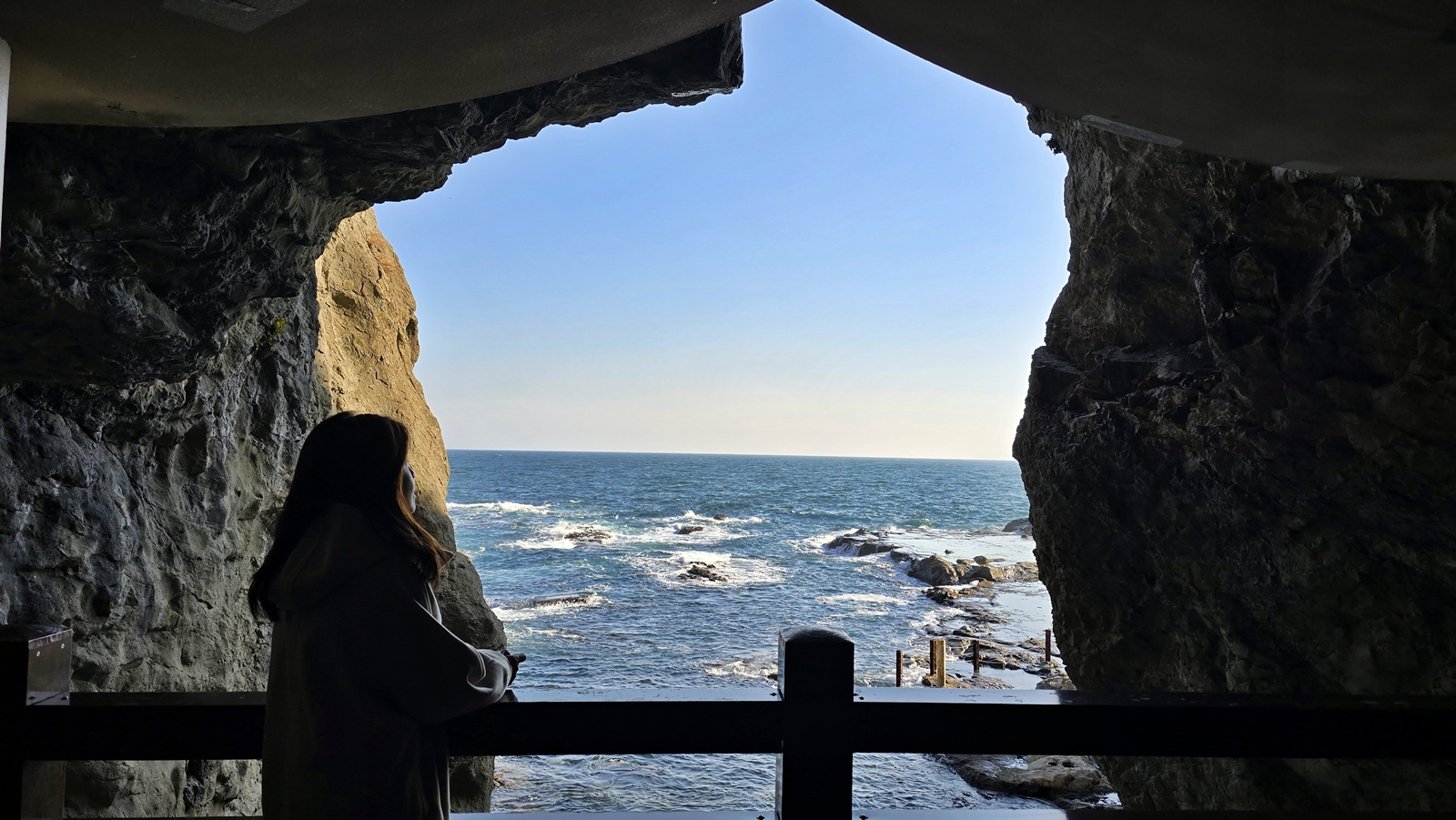 從岩洞望出去 就是一望無際的大海~~聽著海浪的聲音,心情也越來越振奮,準備去探險了 ![]()