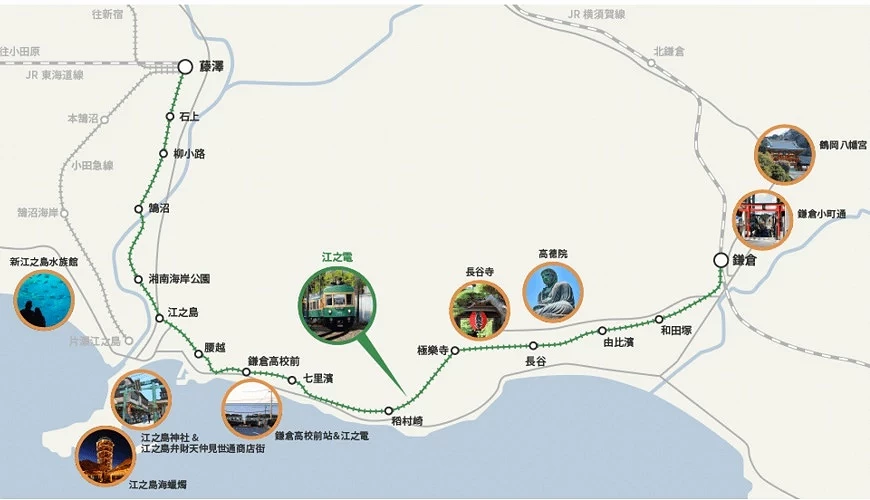 鎌倉(Kamakura)與 江之島(Enoshima),是東京近郊 熱門的一日遊景點,不僅僅是外國遊客,連當地人都很喜歡到這裡度假。從東京出發 使用江之島周遊券旅遊套票或是江之島電鐵一日券