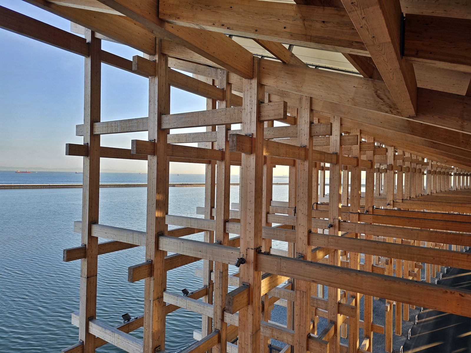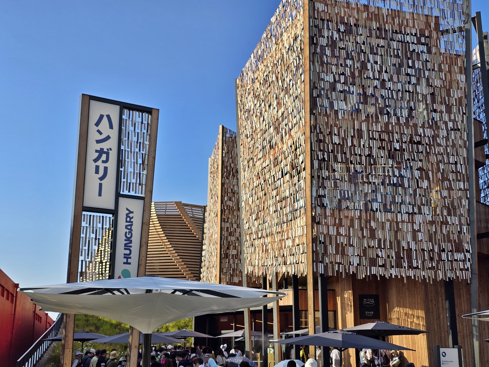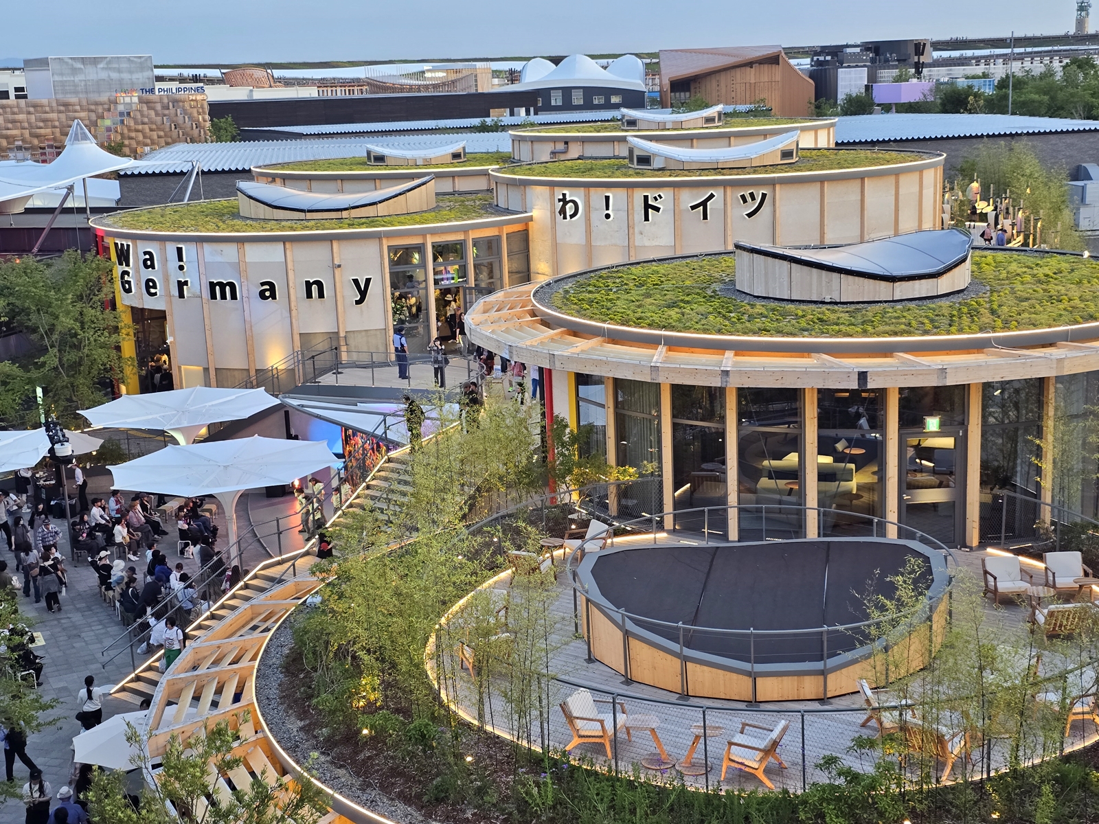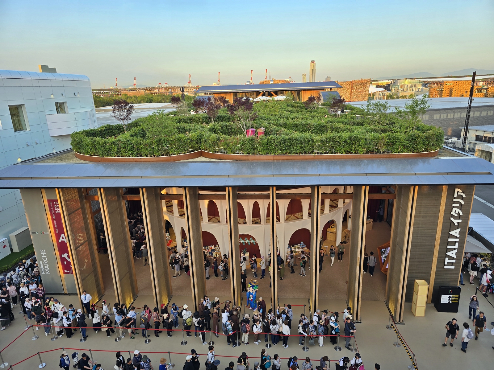 大屋根是整個世博會的核心標誌性建築,由建築師藤本壯介設計。它是一個周長約2公里、面積達6萬平方公尺的巨大環狀木造迴廊,被金氏世界紀錄認證為世界上最大的木造建築。