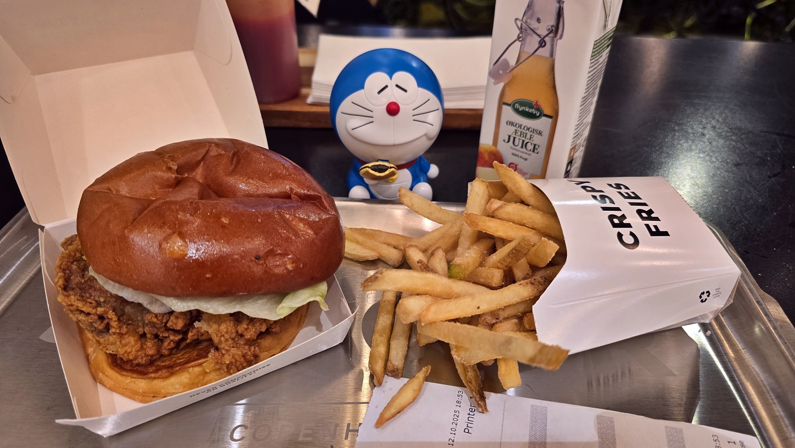 晚餐我找了一家評價還不錯的漢堡店,炸雞漢堡+薯條 竟然要150丹麥克朗 (1 DKK = 4.8 TWD.)