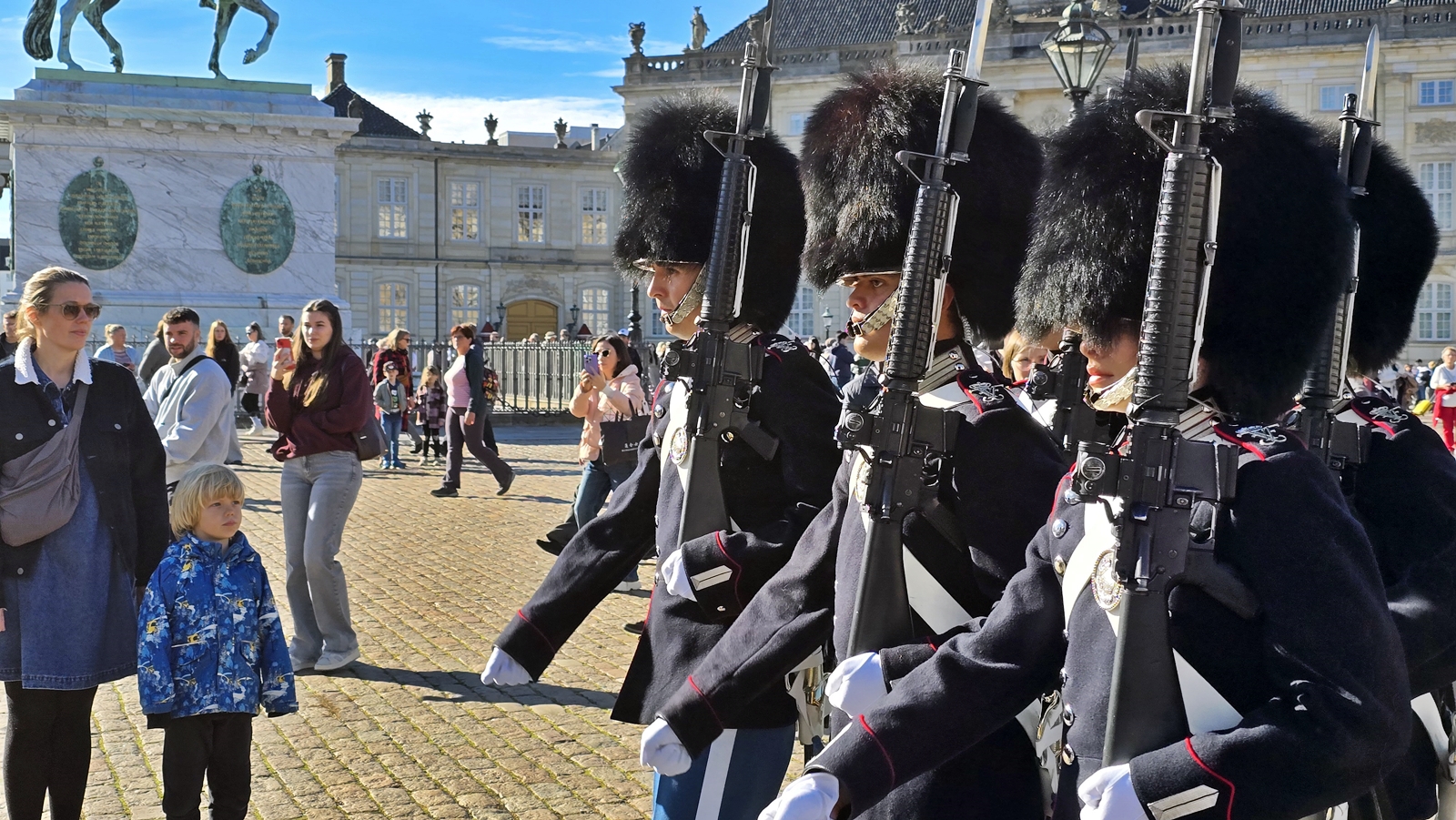 前往阿馬林堡宮Amalienborg Palace 途中 見到一群衛兵經過