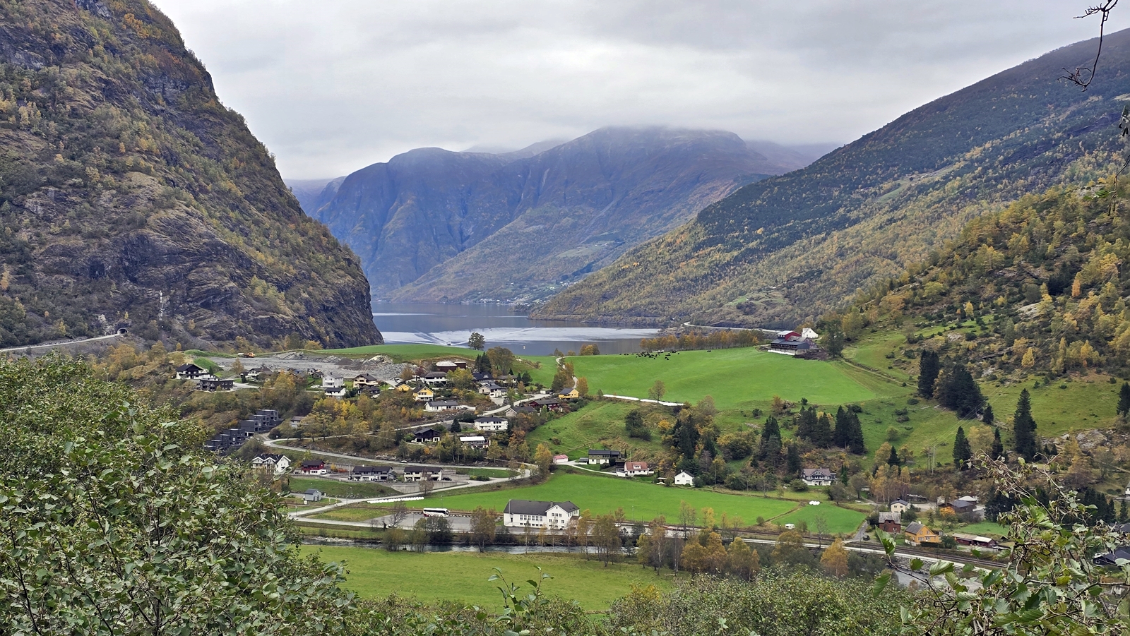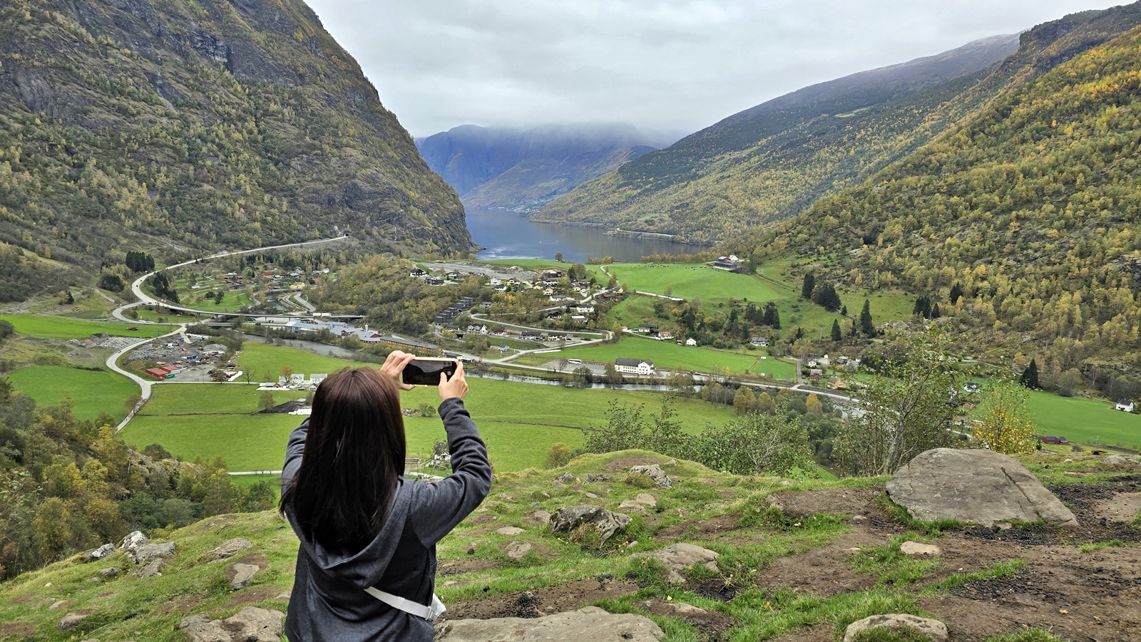 到達終點 俯瞰 Flåm 小鎮全景