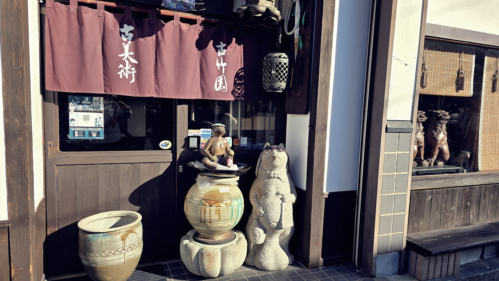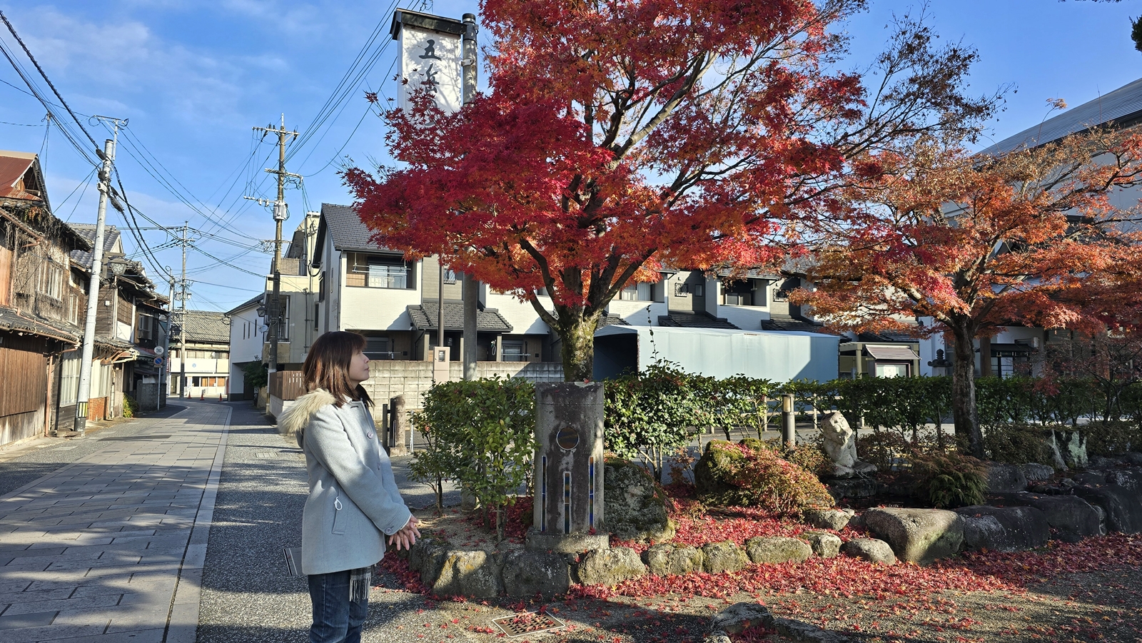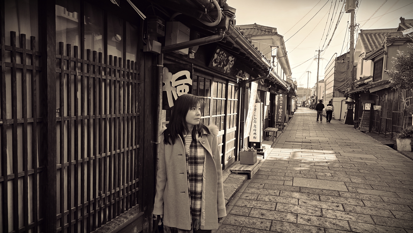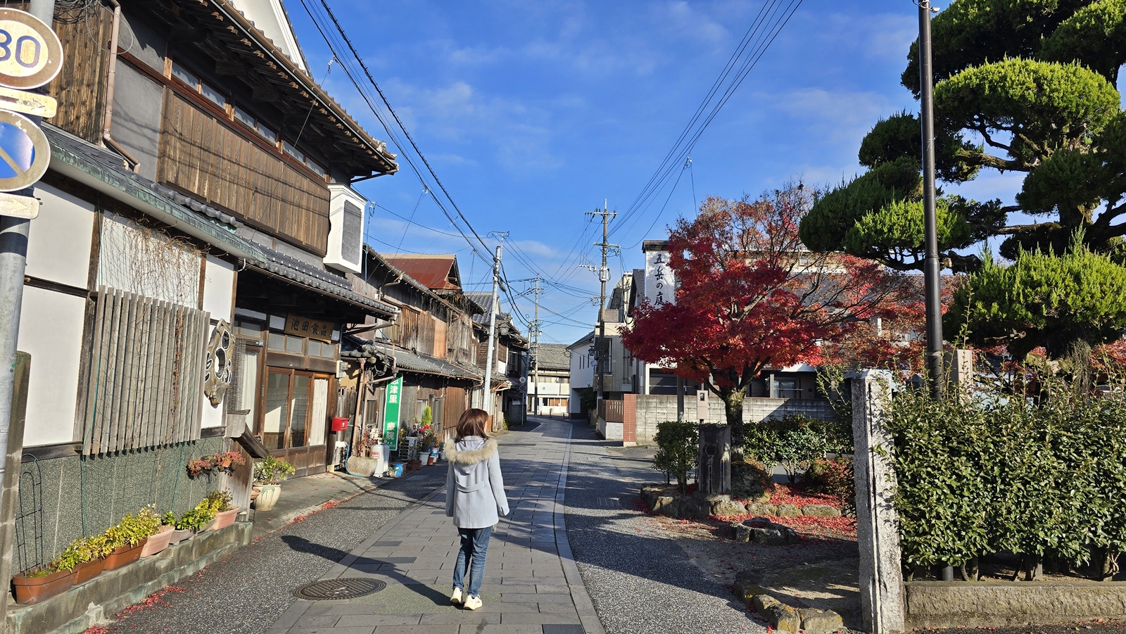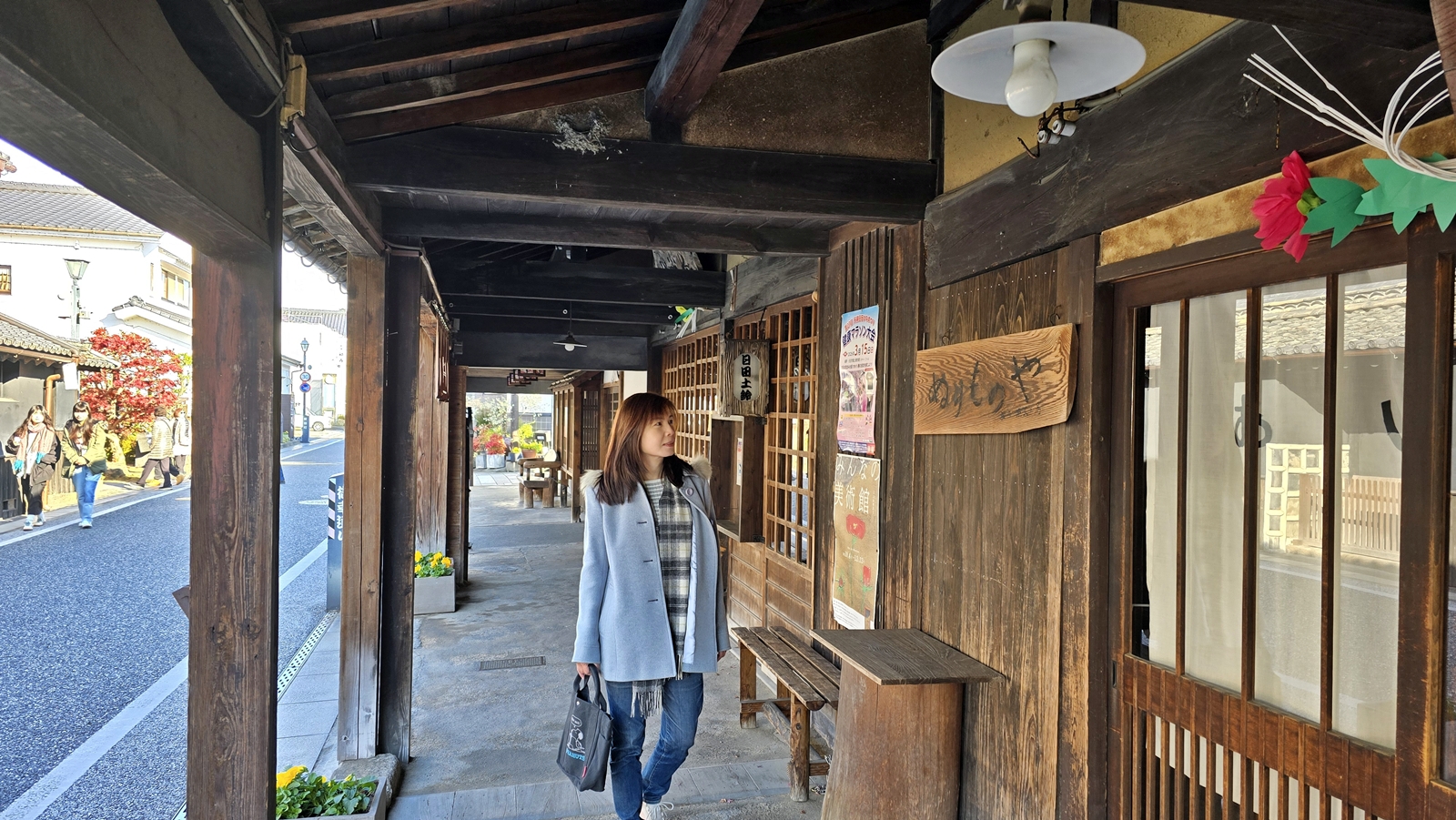 走在豆田町的街道上,兩旁是白壁土藏建築,木造的屋瓦在陽光下泛著古樸的光澤