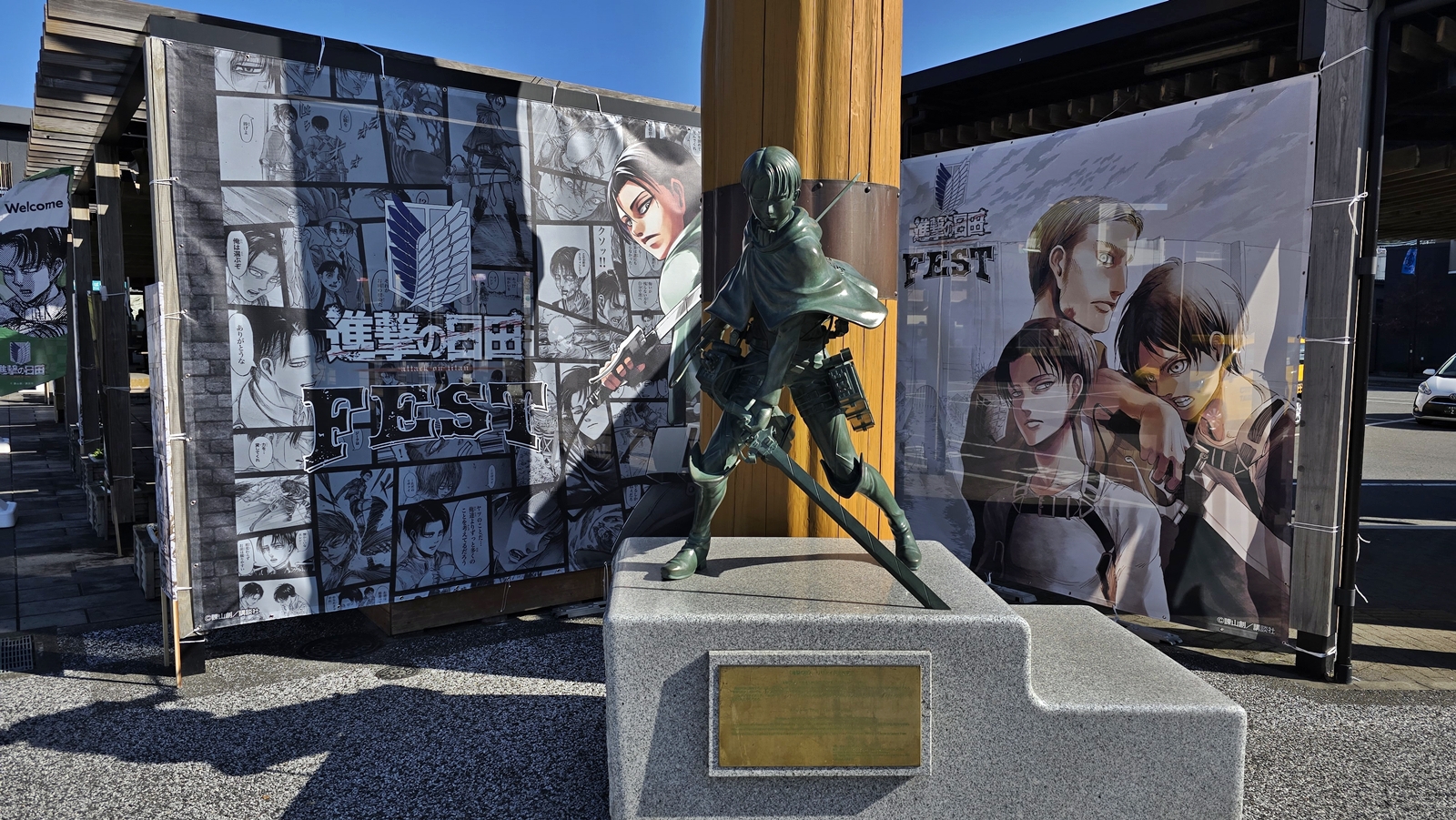 知名的漫畫 進擊的巨人作者就是日田人,因此漫畫中出現不少日田場景;JR日田站前也有銅像,進擊的巨人的粉絲紛紛前往朝聖