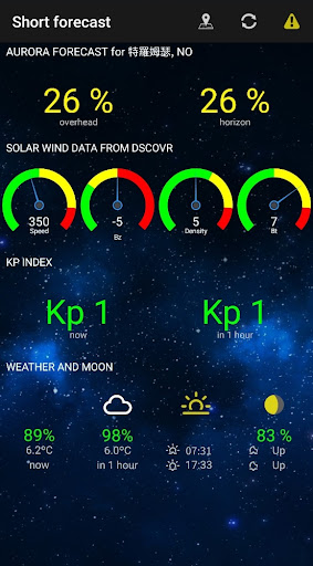 極光強度 是由KP 指數 (KP Index)來判定,許多app 中都有極光指數的分析,KP值的範圍是(1~9) 數字越高越好 ;特羅姆瑟的KP值常常有來到3~5,因此看到極光的機率相當高