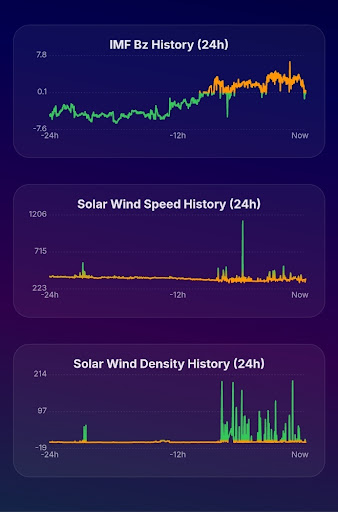 行星際磁場 (Bz):出現負值 ,Bz 越負,極光活動越強。這是極光產生的關鍵因素。