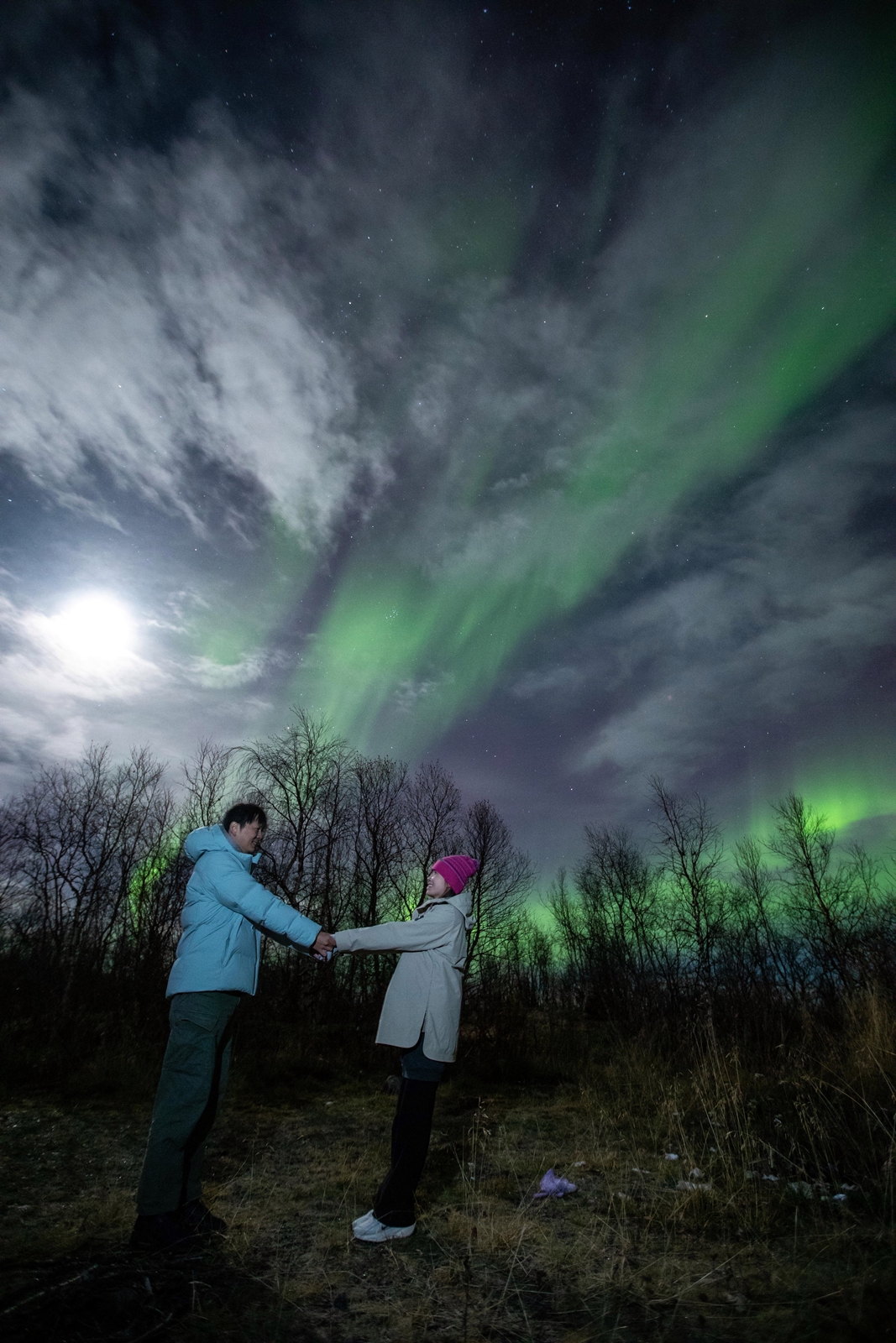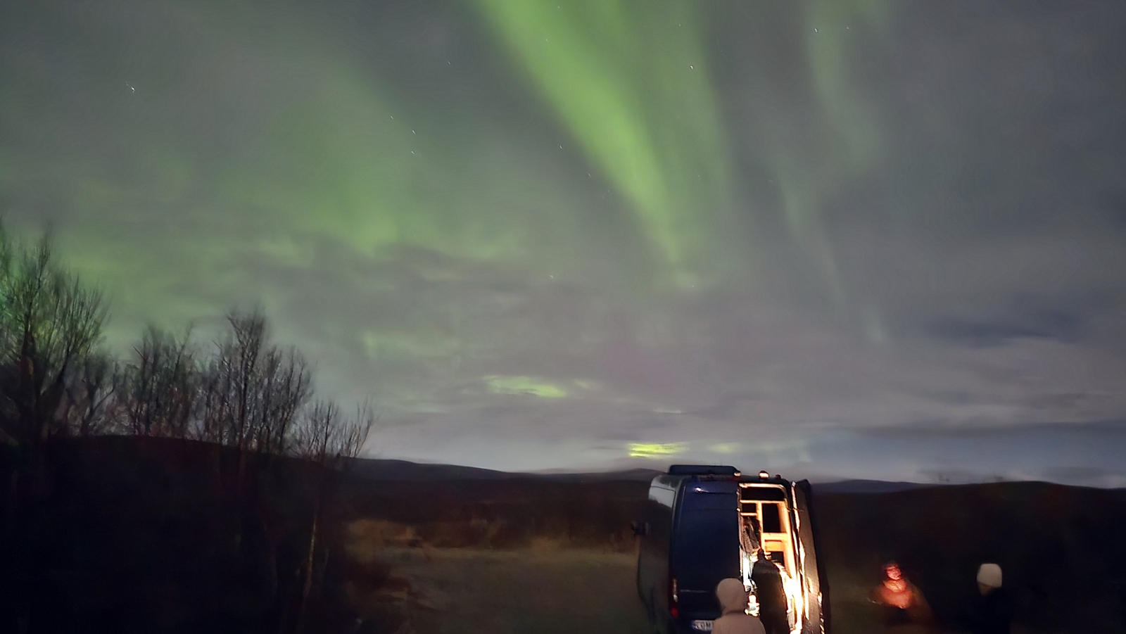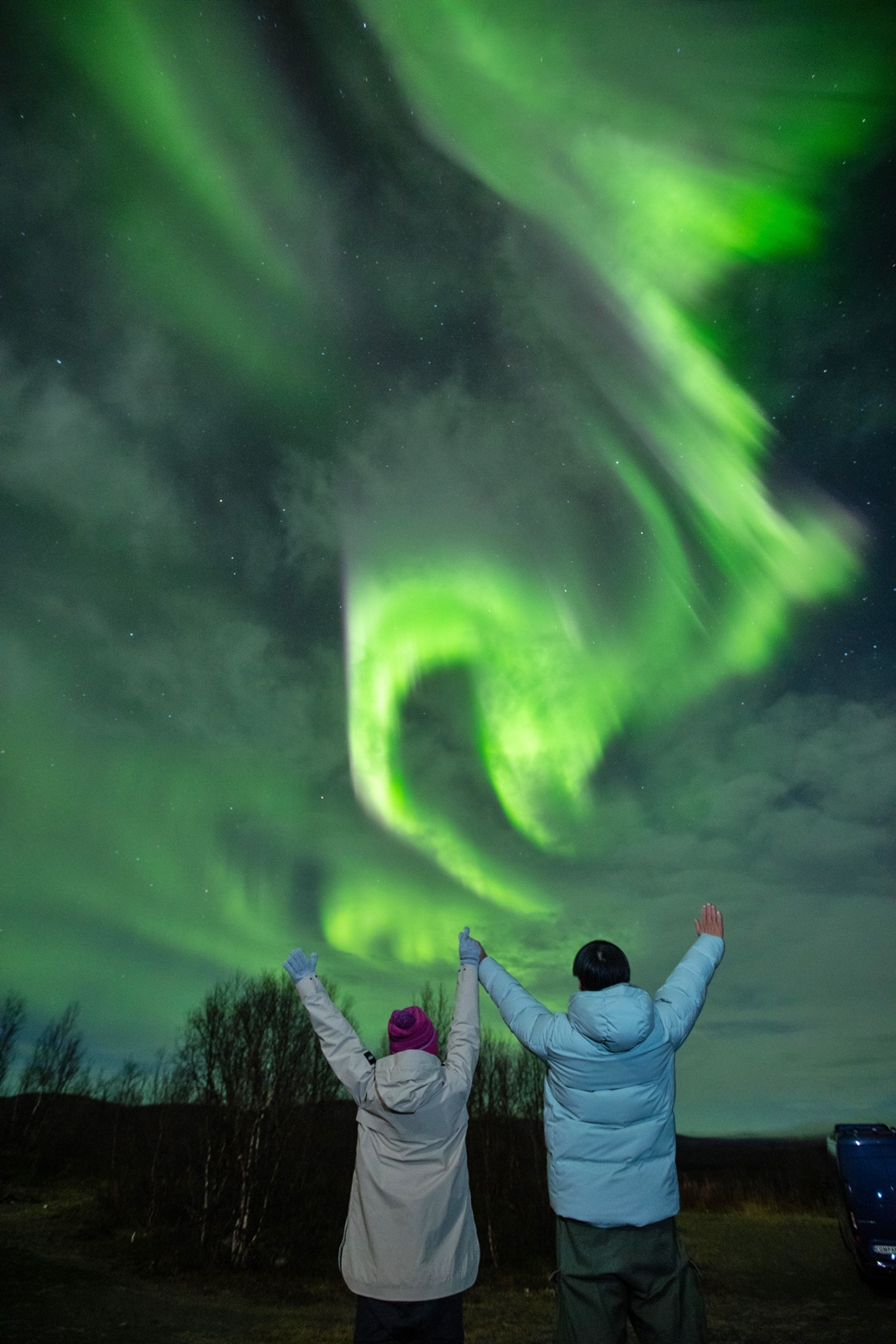 但是我參加的極光團導遊相當盡職,開車5個小時 從挪威跨境來到了芬蘭,尋找到了絕佳的天空